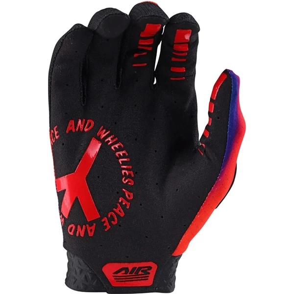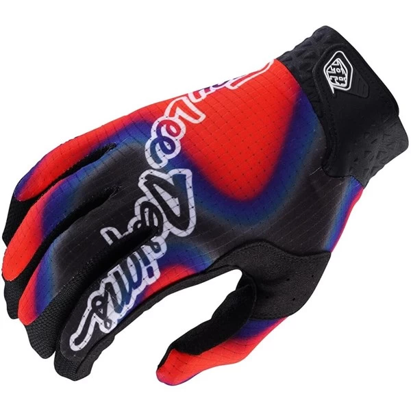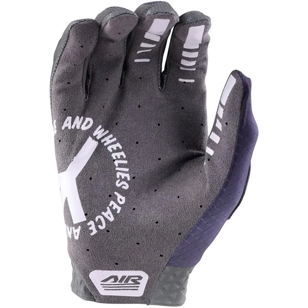 The Air Glove features a compression molded cuff and a single layer palm with laser perforated holes for breathability. Micro mesh is used all over for added ventilation. Silicone print on finger offers a grippy spot for brake lever grip.